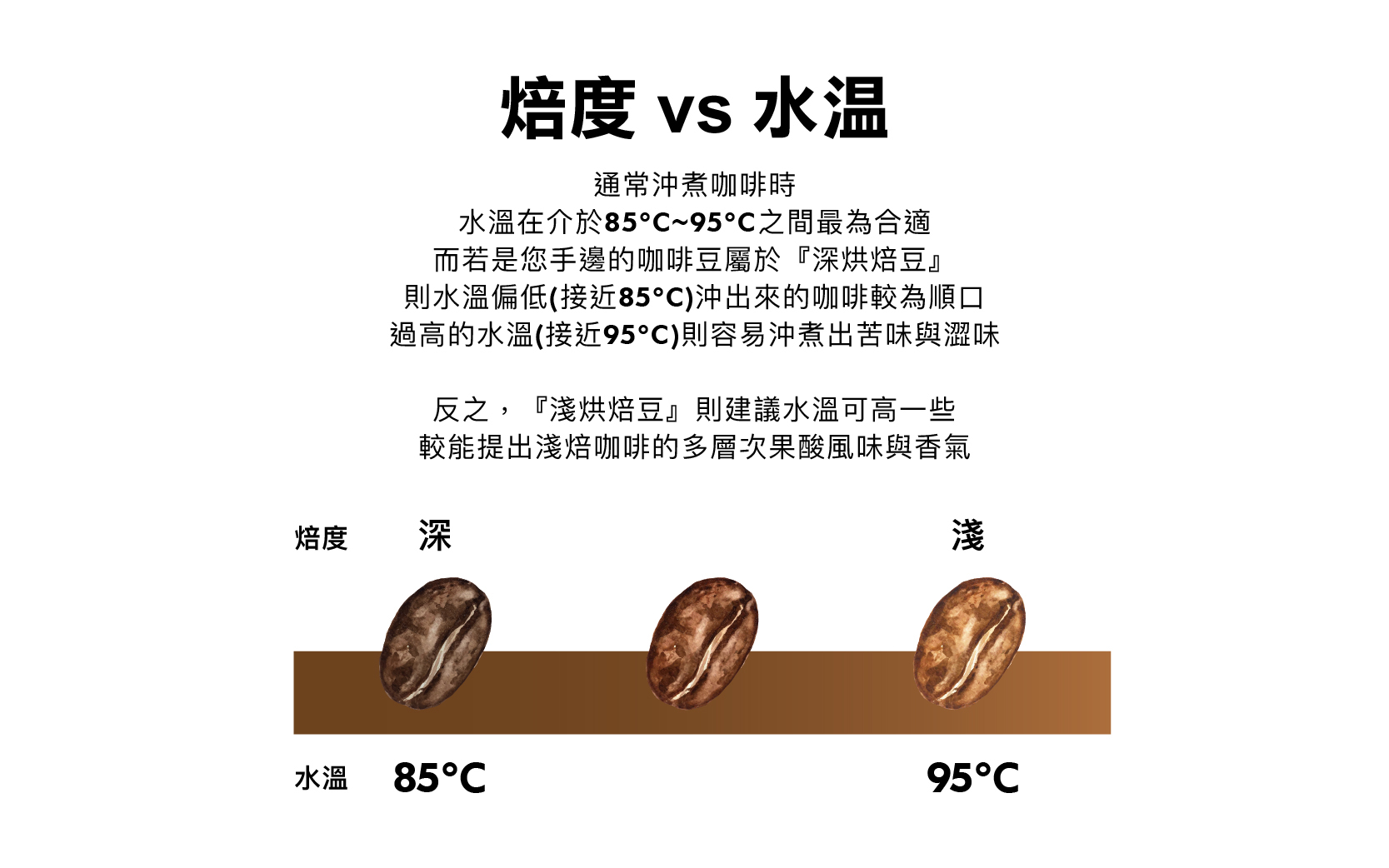 則建議水溫可高一些,較能提出淺焙咖啡的多層次果酸風味與香氣