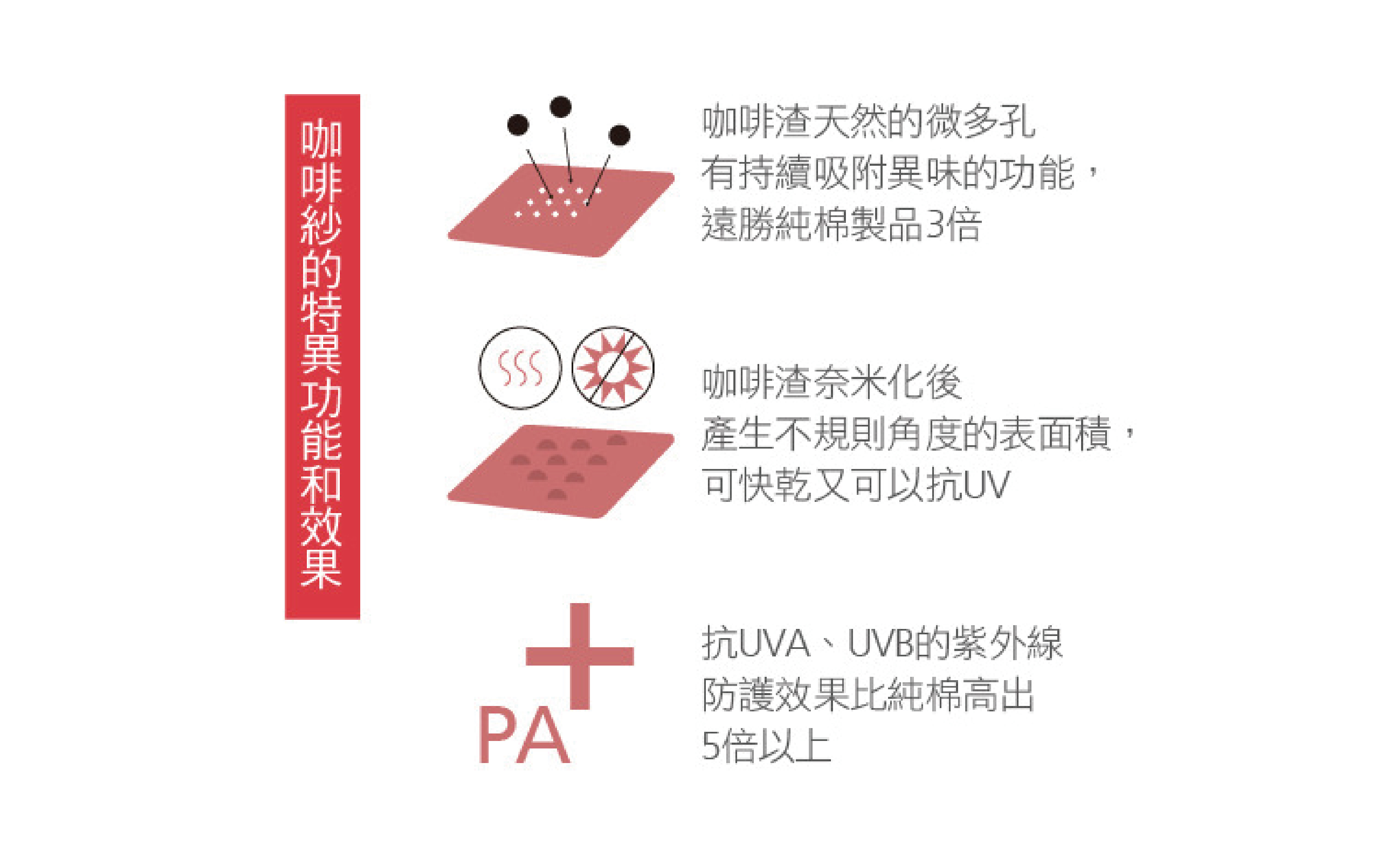 回收咖啡渣製成「咖啡紗」,兼具吸異味、抗UV、快乾
