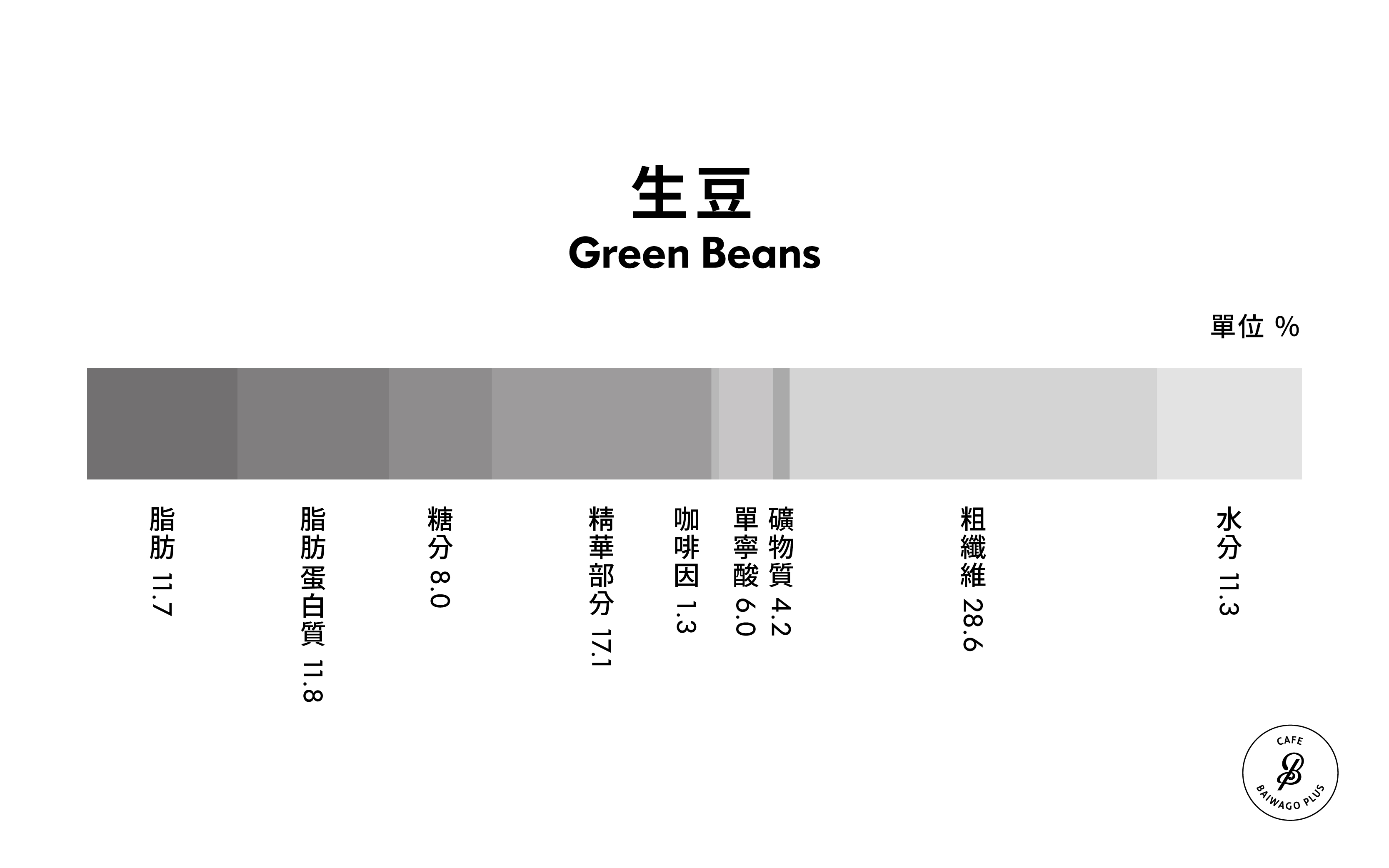 生豆大約含11%的水分,經烘焙後餘約2.5%。