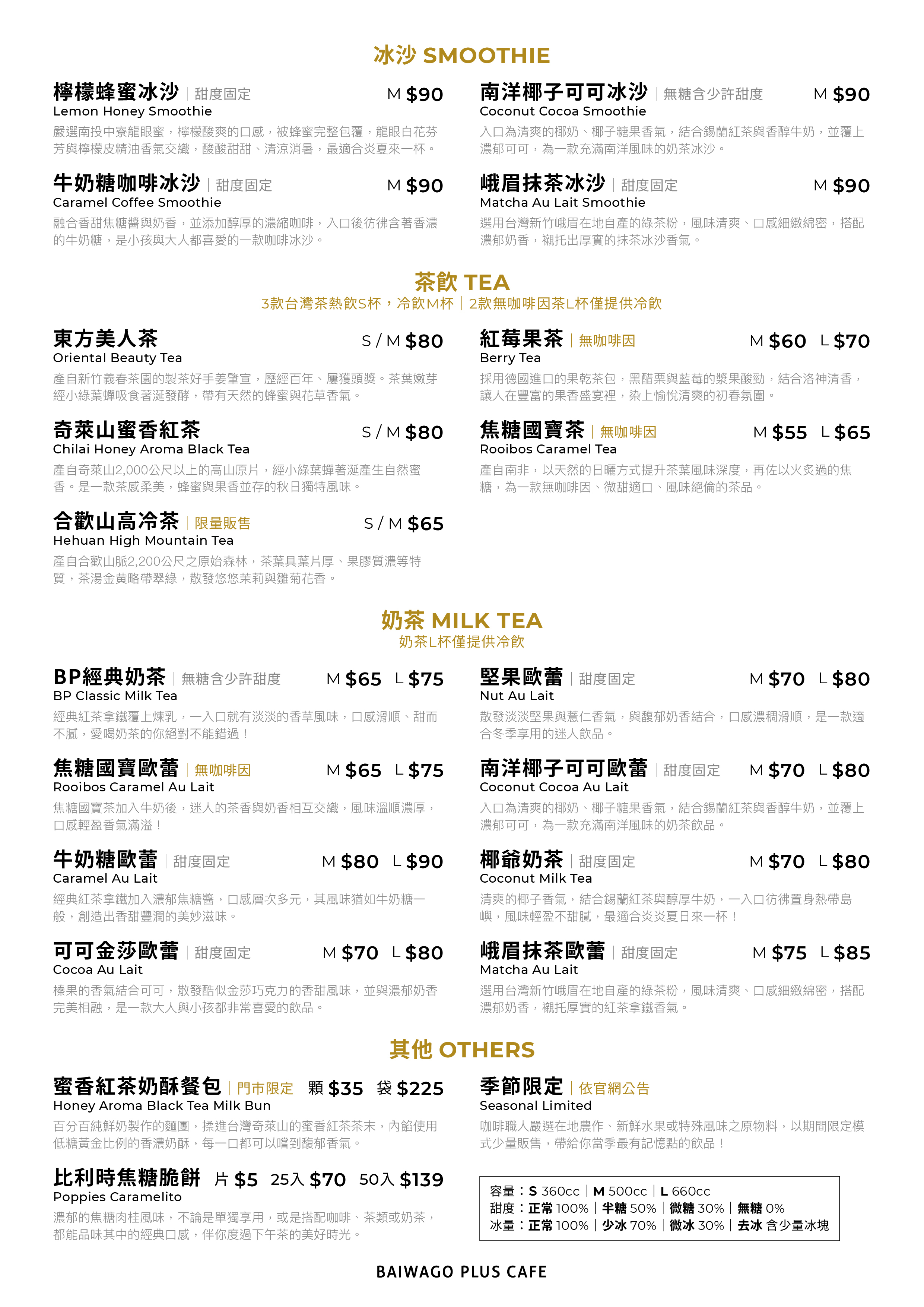 ❶ 菜單除品項更新外,容量與價錢均同步調整(內容詳見新版菜單)