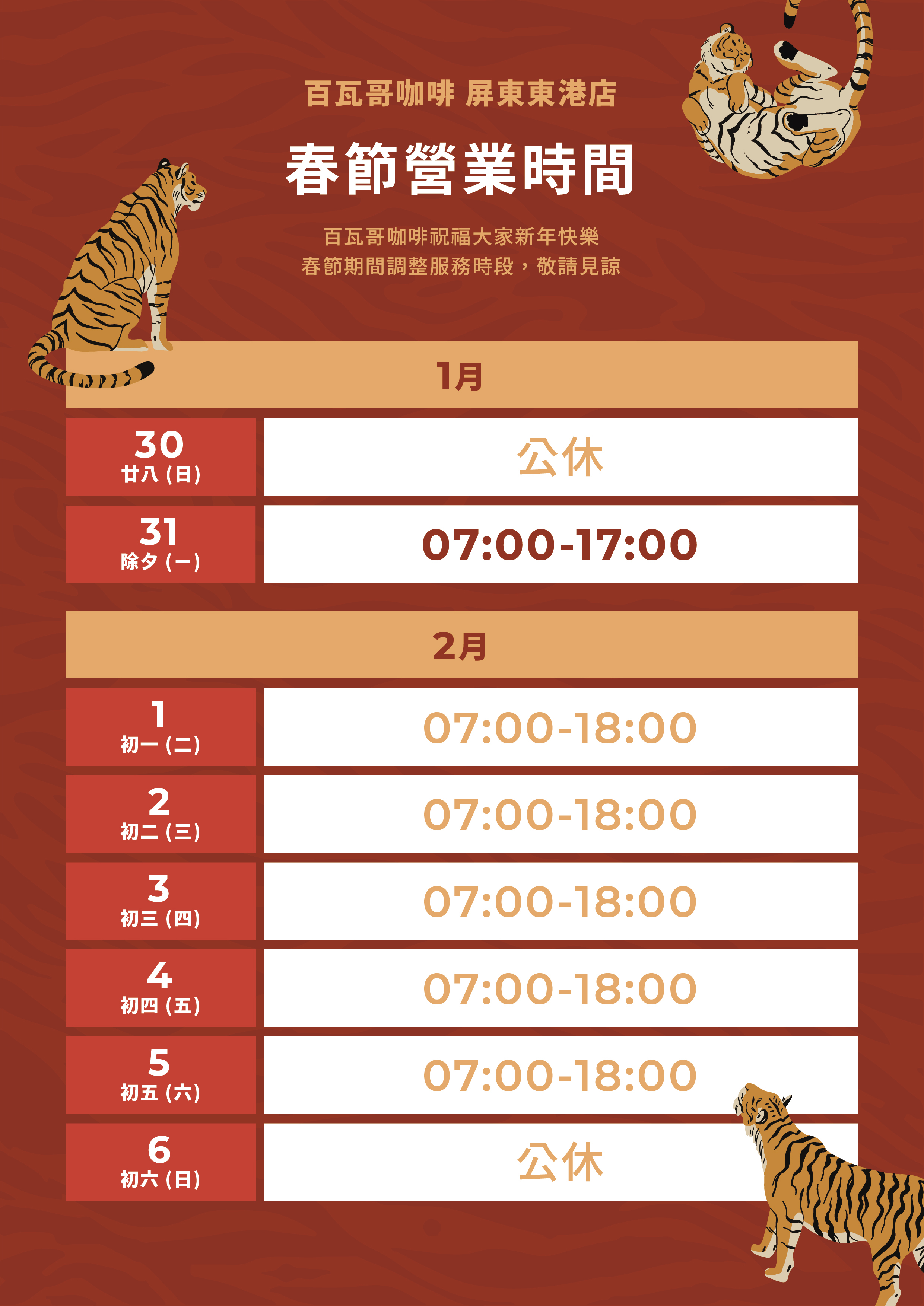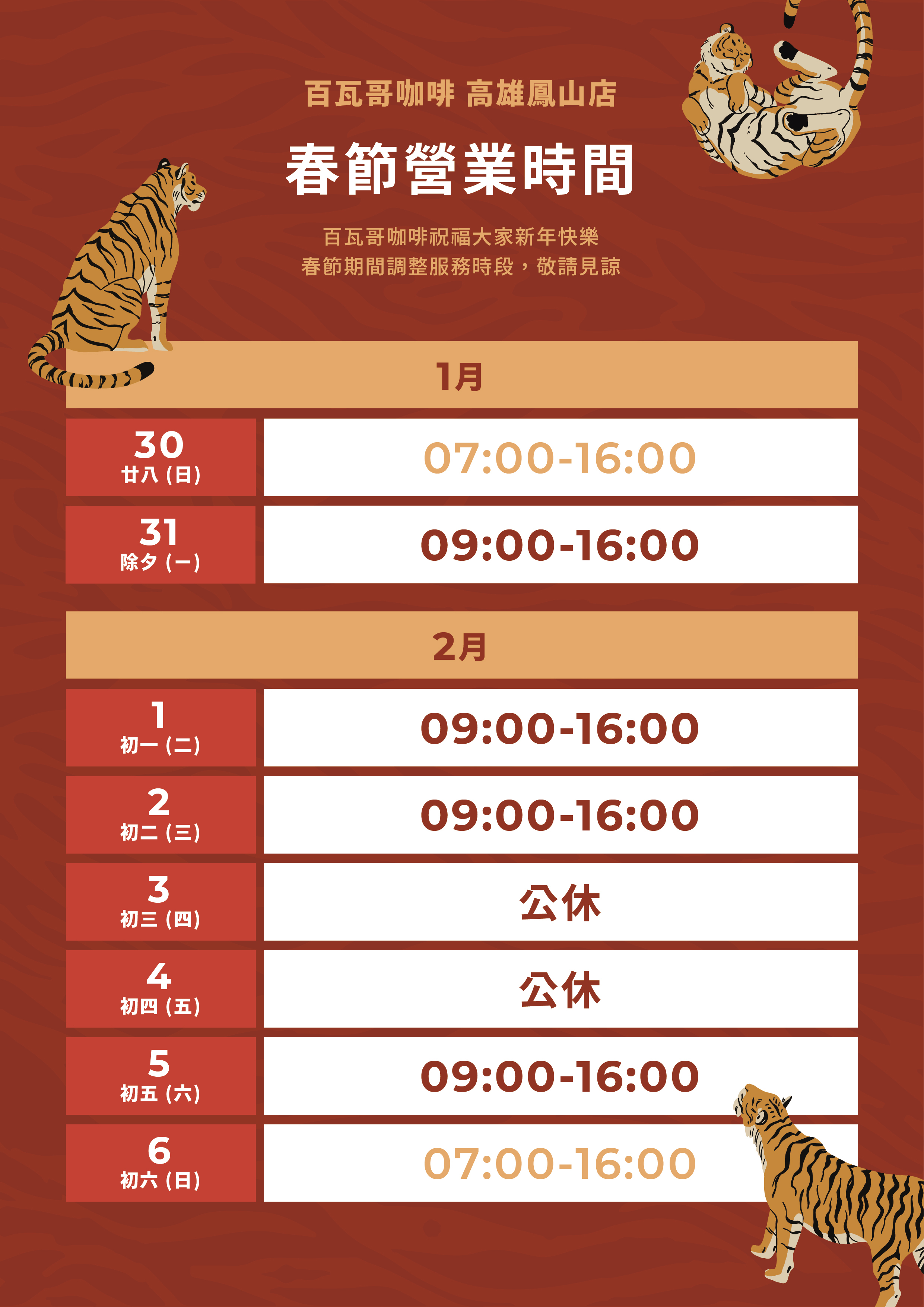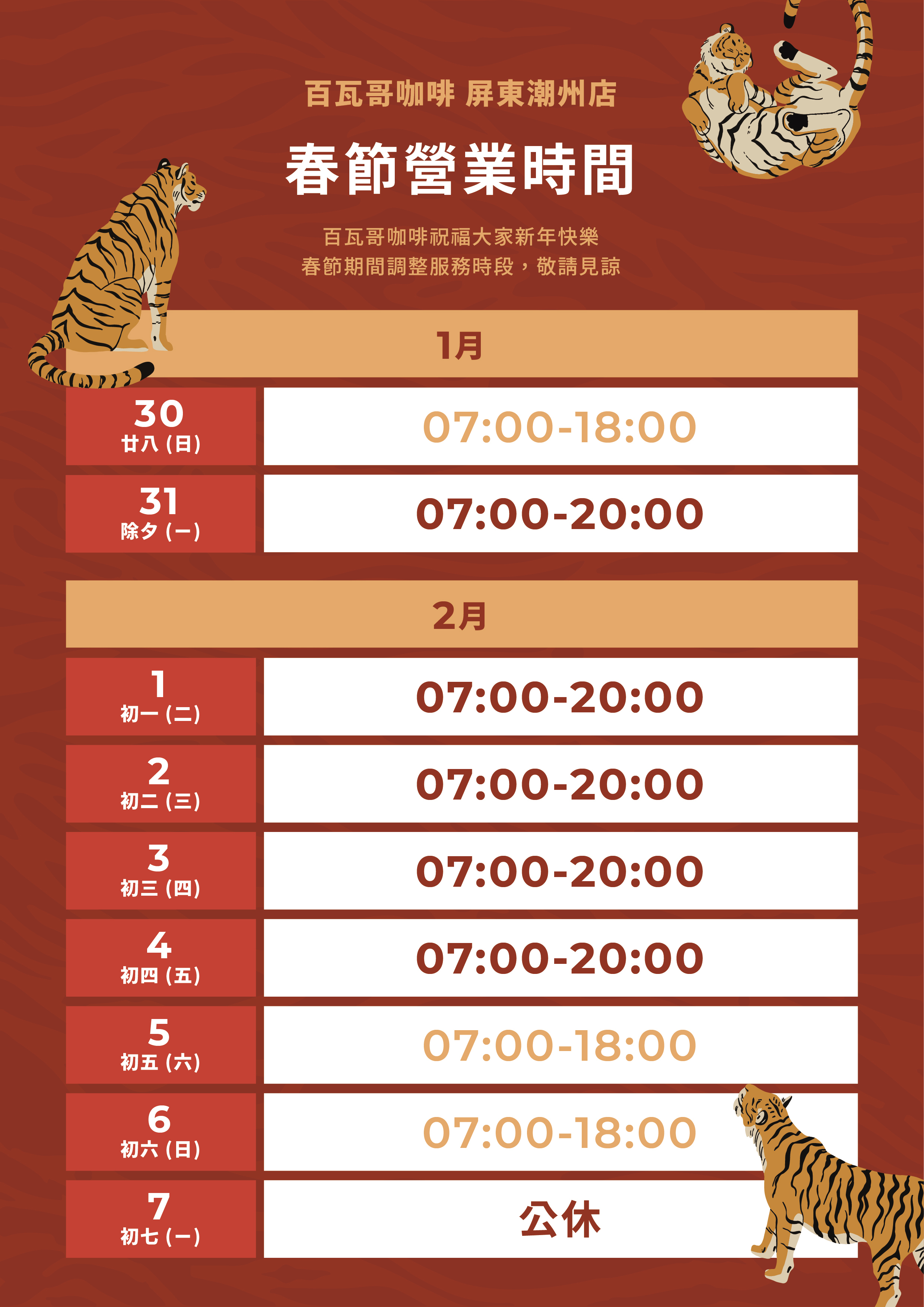 農曆春節期間,百瓦哥官網出貨與全台門市營業時間略有異動,再煩請大家注意不要撲空了!