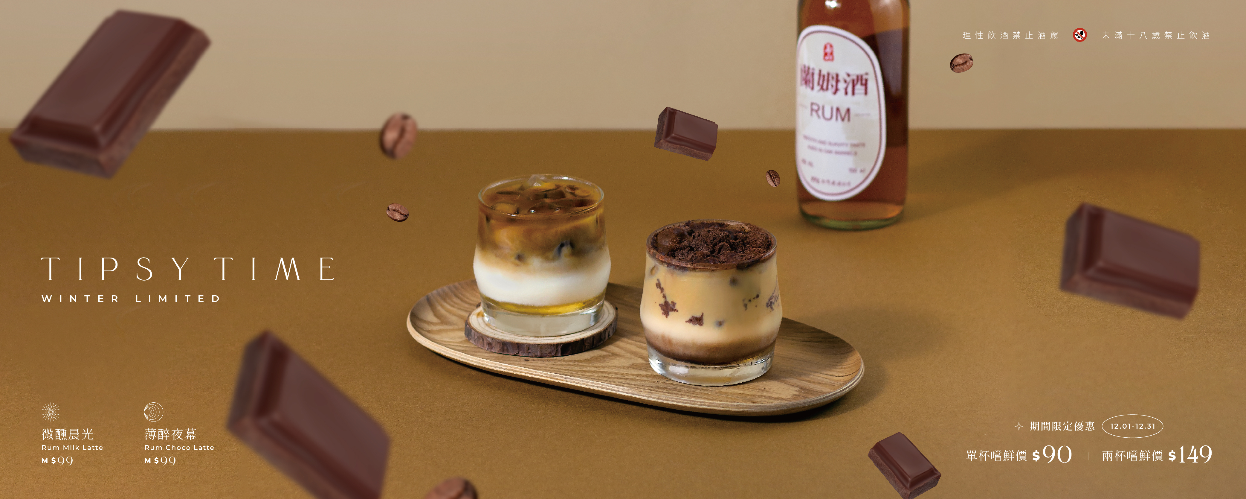當蘭姆酒加入濃醇拿鐵,色澤由金色到乳白的漸層,就像迎接晨曦的破曉時光,奶香口感如晨間薄霧,清新順口;而蘭姆酒後勁彷彿光線穿透雲彩日出,突然帶給喉嚨一股暖意,那種不知不覺的微醺既美好又讓人嚮往。