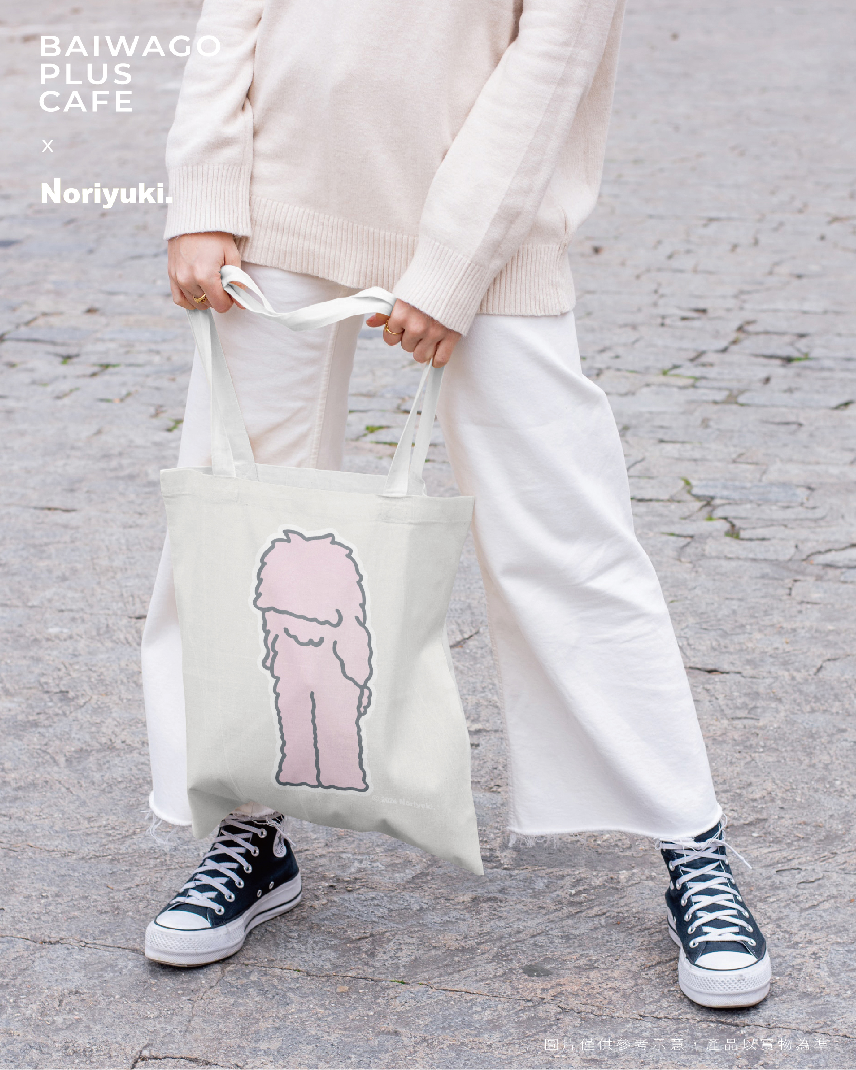 這次的環保袋從Noriyuki.設計的眾多角色中挑選3隻與大家分享:有著喜歡暖活、經常坐立不安的「gone」;聰明細緻、喜歡和自己相似東西的「peachita」;以及和藹可親、喜歡堅硬物體的「aatan」。