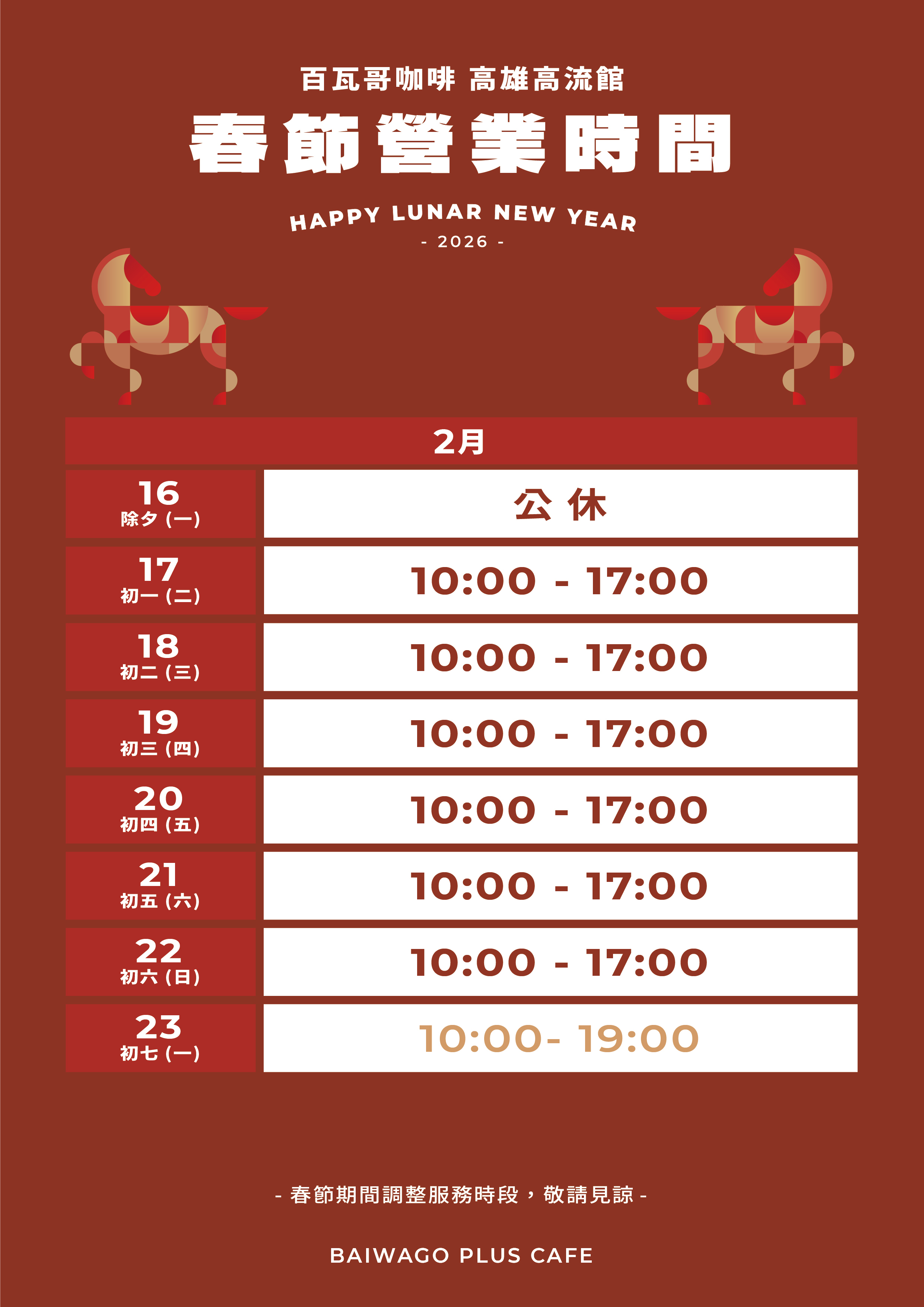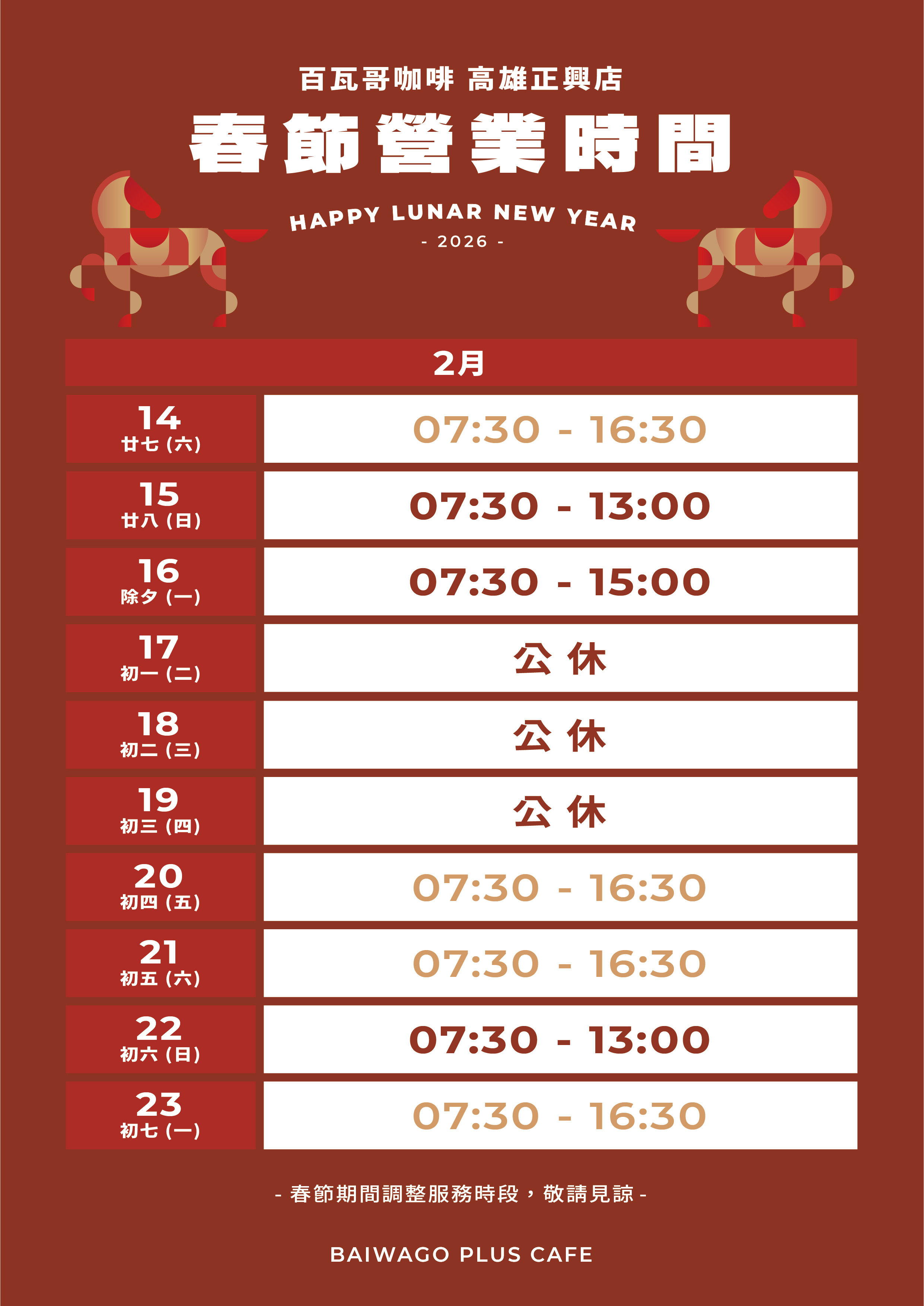 春節營業時間異動