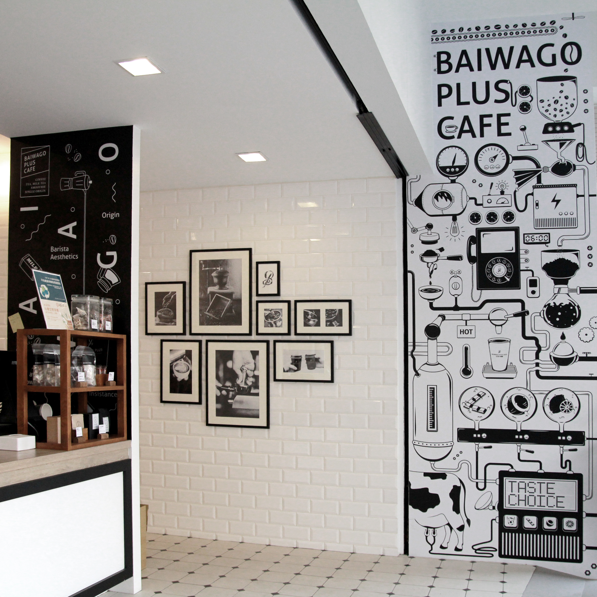 特別以清爽簡約的黑白勾勒出咖啡機運作的線條插畫