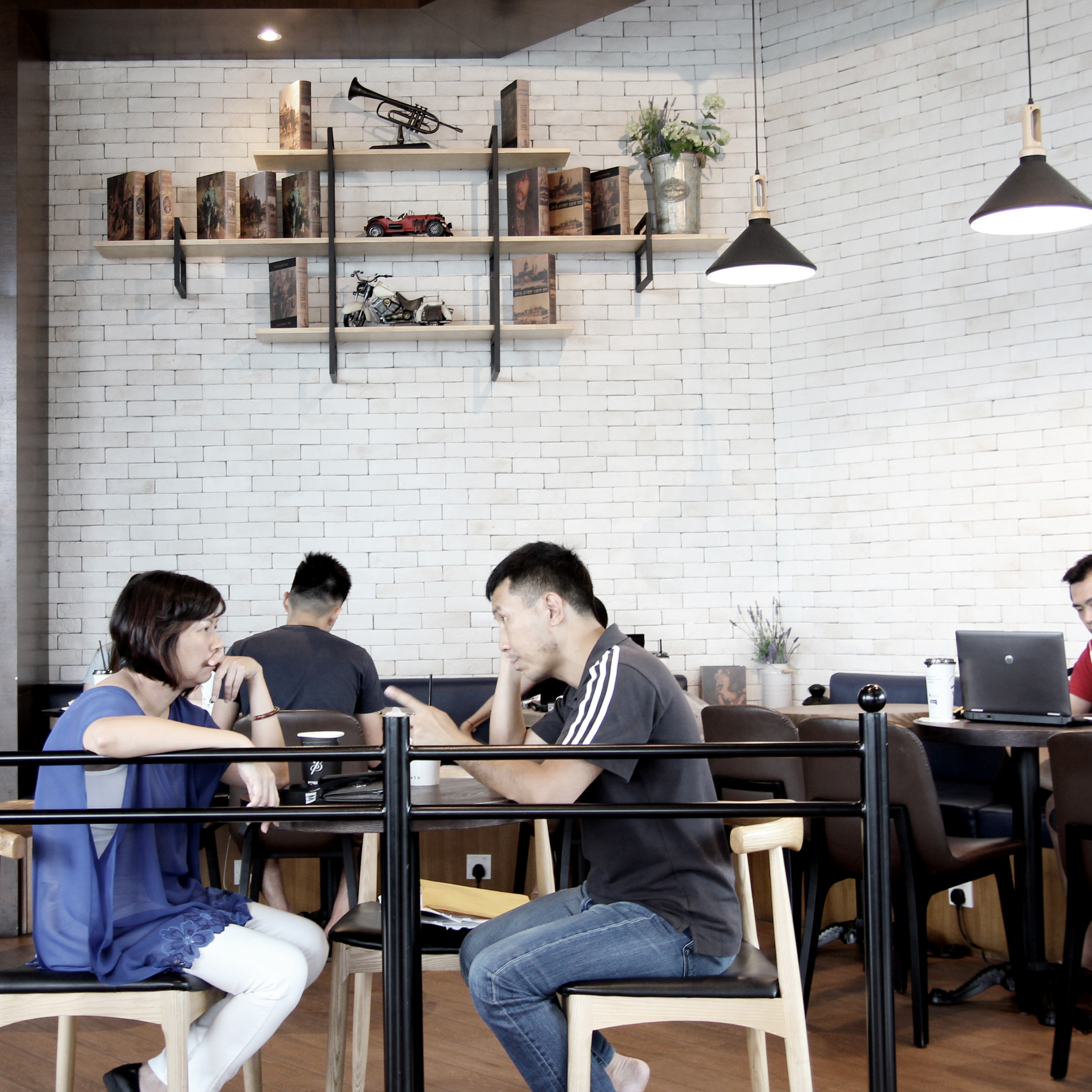 室內以明亮及清爽的白磚堆砌牆面