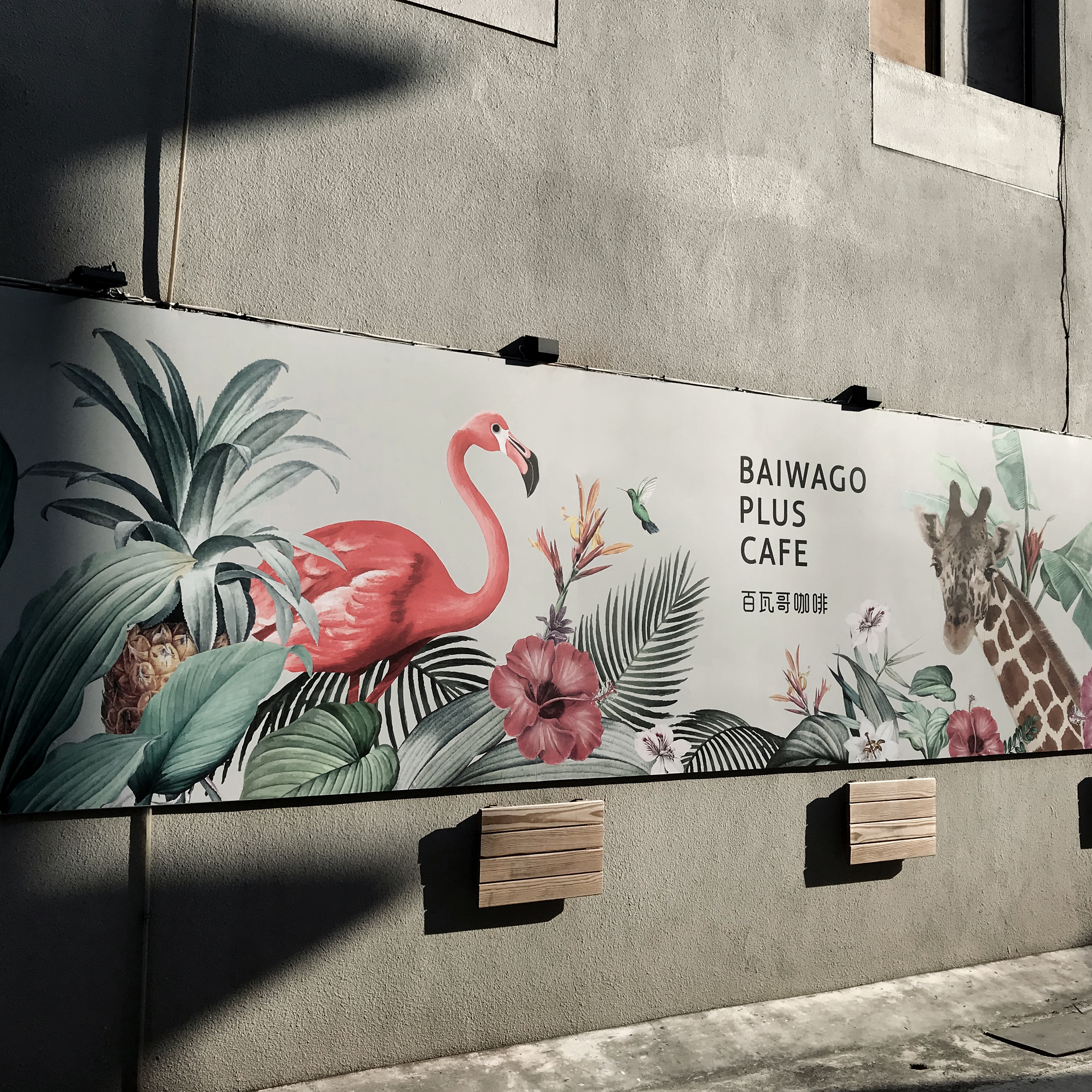 百瓦哥咖啡也在這裡設計了一面充滿南洋風情的打卡牆